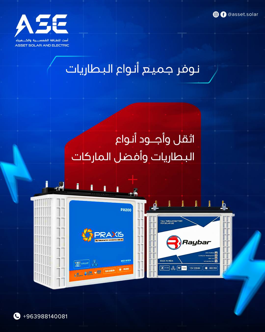 جودة مضمونةأجود وأثقل أنواع البطاريات وأفضل الماركات العالمية مثل Praxis و Raybar بكفاءة طويلة الأمد.