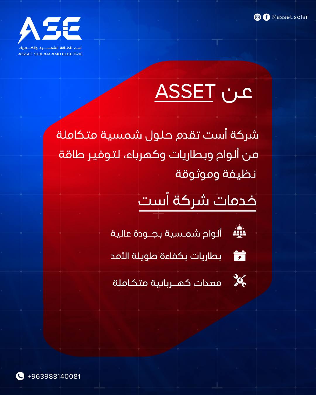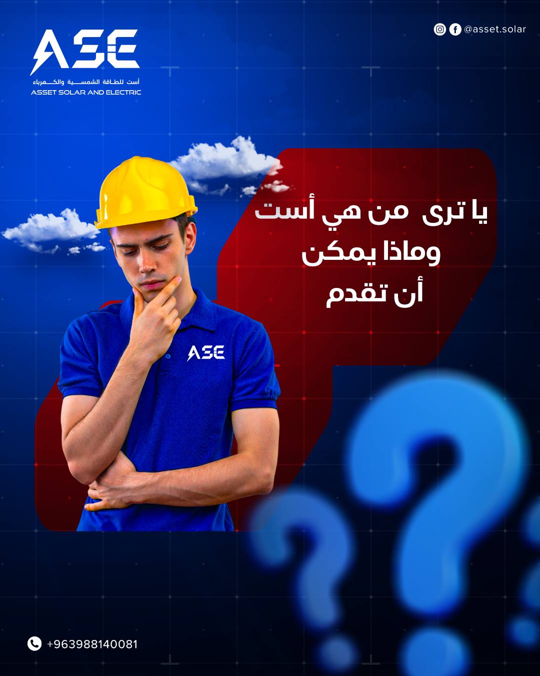 شركة أست تقدم حلول شمسية متكاملة من ألواح وبطاريات وكهرباء، لتوفير طاقة نظيفة وموثوقة لمنازلكم ومنشآتكم. نسعى لأن نكون شريكك الموثوق في رحلة الانتقال إلى مصادر الطاقة المتجددة.